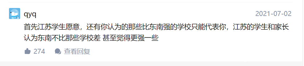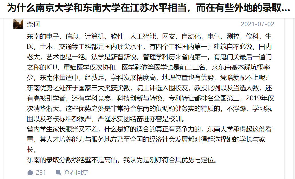 還有這個直接説江蘇學生願意,江蘇家長和學生都認為東南不比那些學校(錄取分數線比東大更靠前的某些985)差