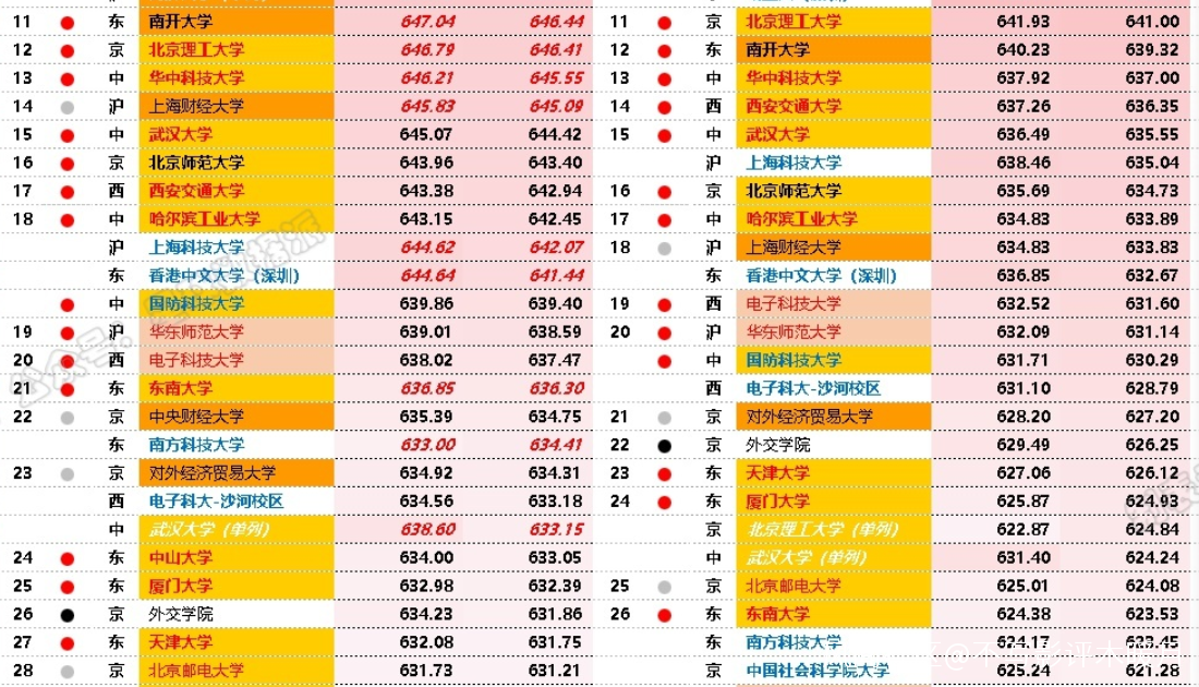 而在全國其它省份,能去東大的分,可是去不了這些985的啊。畢竟前面咱們説了,東大在全國各省平均分數線只排26名啊。