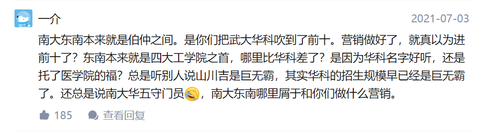 比如這個,直接就説南大東南本來就是伯仲之間,武大華科都是營銷做得好