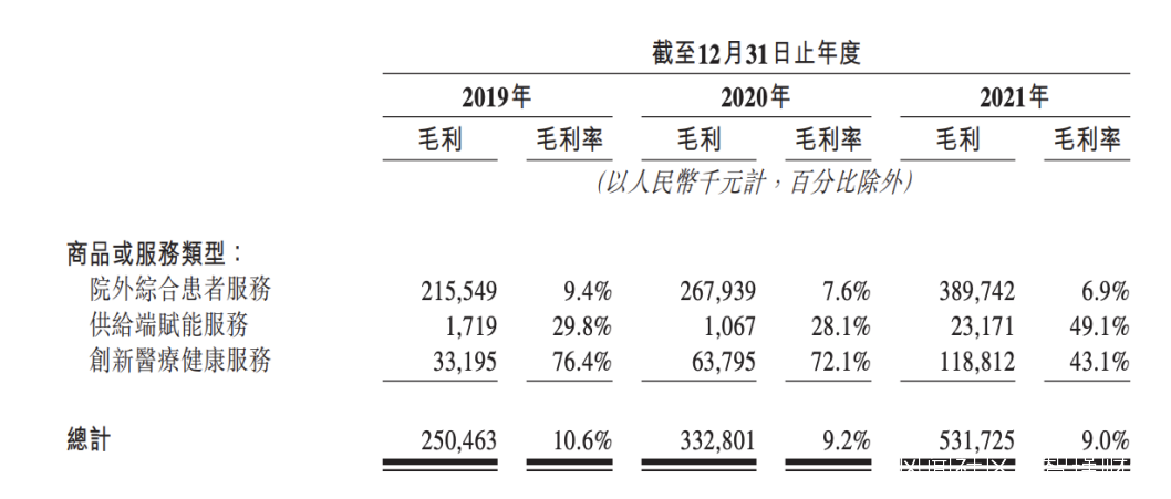 不過,儘管主營業務毛利偏低,但供給端賦能服務和創新醫療服務毛利水平相對較高,只是這兩項業務整體佔比較低,難以對其經營業績帶來突破性的改變。