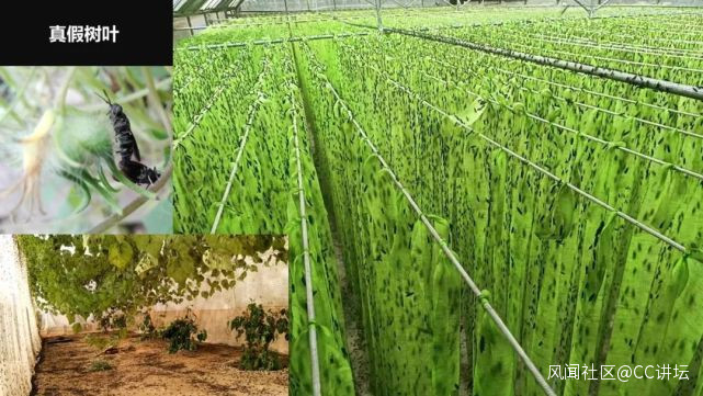 Ok,我們的第一代產房出來了。我們在裏面建了綠植,讓蟲子在裏面產卵。但是出現了問題,就是因為我們為了獲取到更多的卵,在單位時間裏面獲取到更多的卵,所以我們加大了蟲子的密度。密密麻麻的蟲子會趴到綠色的植物的葉片上,要麼這個樹葉被壓彎了,要麼這個樹葉因為這些黑蟲子的遮擋失去了光合作用,慢慢就死了。還有一點,就是因為我們的天然植物它會有很多的縫隙,這個蟲子——黑水虻在產卵的時候,它非常喜歡把自己的卵產到這些縫隙裏面。產是產了,在縫隙裏收不到,還是沒卵用。