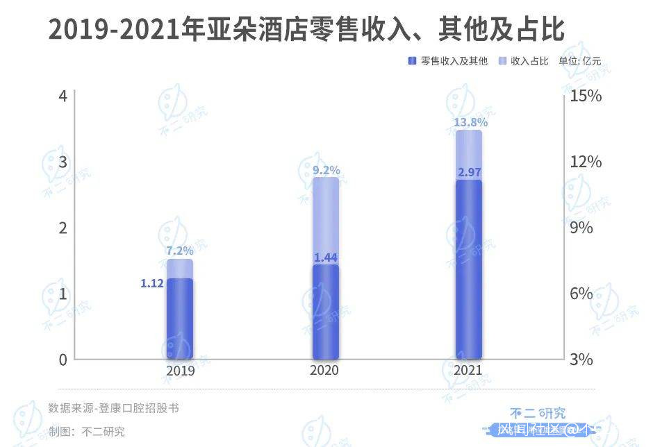 在加盟和直營酒店業務以外,亞朵推出基於場景的零售業務。2019-2021年,其零售收入及其他分別為1.12億元、1.44億元和2.97億元,總營收佔比7.2%、9.2%、13.8%。