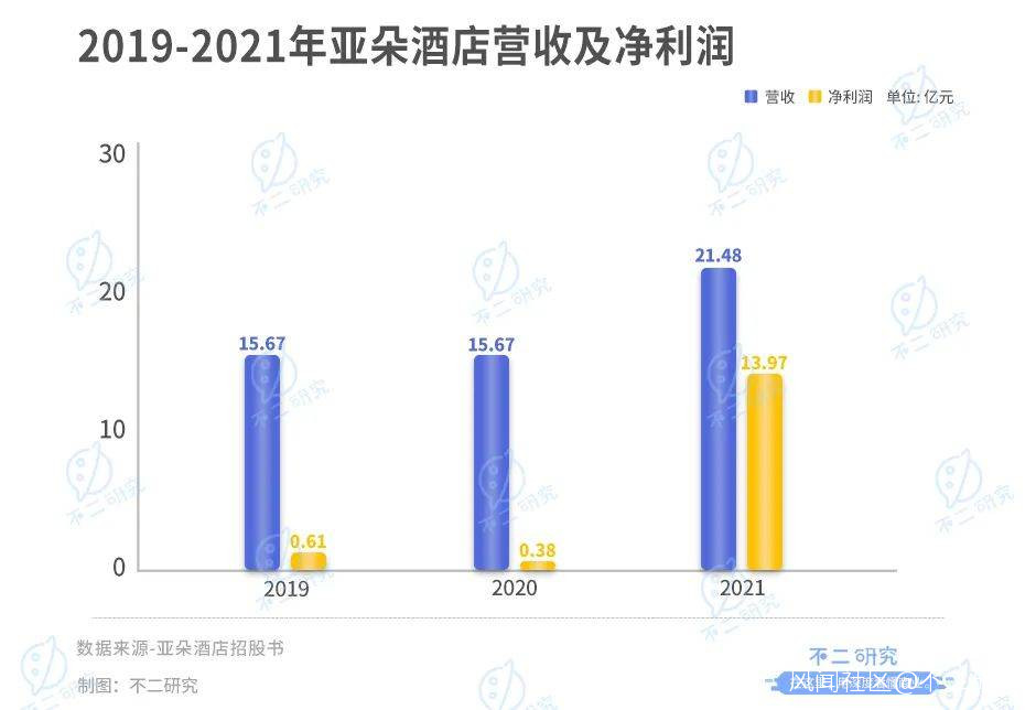 在6月21日的更新版本中,「不二研究」發現亞朵酒店披露了2021年全年的業績數據:2021年,亞朵酒店的營收為21.48億元,同比增加37.09%;同期,淨利潤為17.97億元,同比增加269.2%。