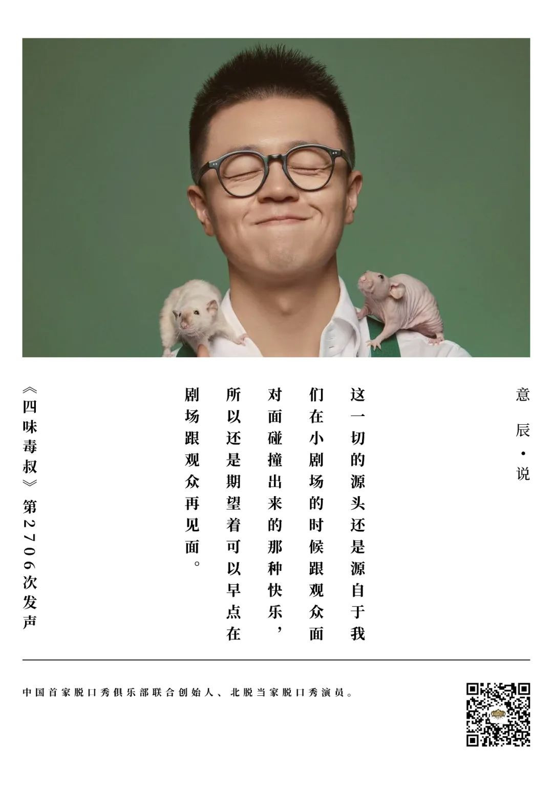 但不管怎麼説,我們雖然取得了階段性的創業失敗,整個脱口秀的行業越來越出圈了,創業再失敗,大家都享受到了這個行業的紅利,我們也有了越來越多的曝光和越來越多的舞台。這一切的源頭,還是源自於我們在小劇場的時候跟觀眾面對面碰撞出來的那種快樂。源自於在小劇場的時候,一個演員他已經消解了的負面情緒,和觀眾還沒有消解負面情緒碰撞出的那種快樂。所以還是期望着可以早點在劇場跟觀眾再見面。