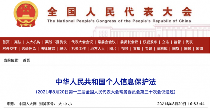 尤其是2021年8月20日正式通過的**《中華人民共和國個人信息保護法》**,已經於當年11月1日正式施行。