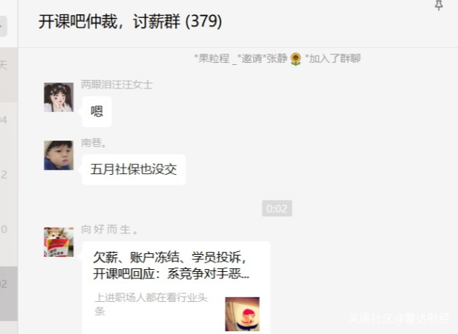 實際上,由於大範圍欠薪,開課吧員工討薪也不是個例。有員工發帖稱,在職員工和離職員工有可能三個月的工資拿不到,目前已經有多個上百人的討薪羣,每天都很熱鬧。
