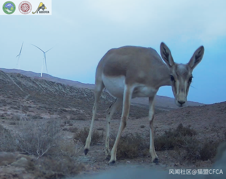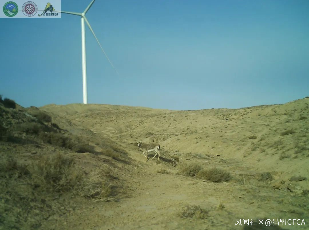 3月底,風機已經立起來了,鵝喉羚和兔猻依舊從這裏路過