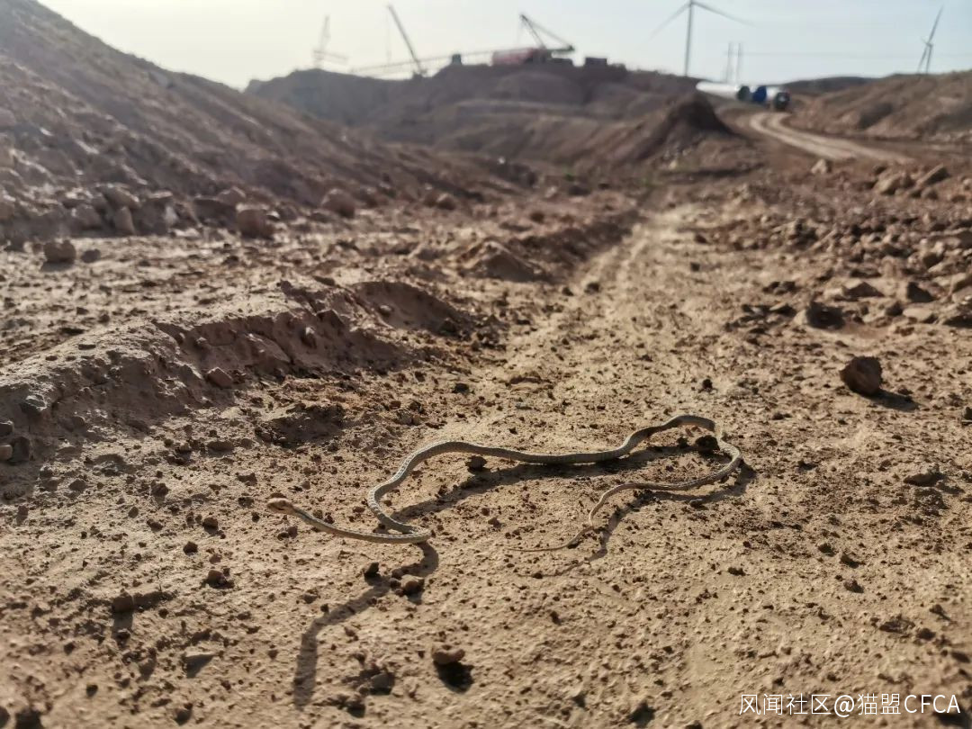 風乾的花條蛇,後面不遠處正在修建風機 ©小小崔