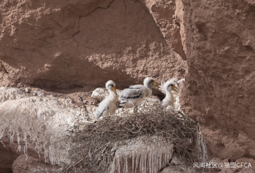 在崖壁上的家裏乖巧等待爸媽的黑鸛寶寶,還有一隻沒露頭 ©心悦