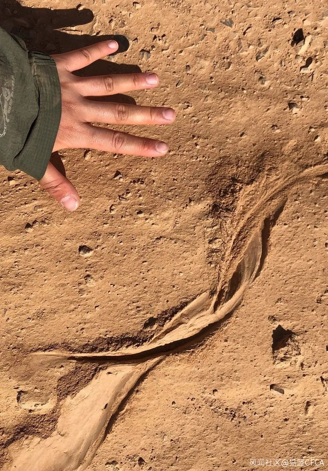 溜走的蛇在地上留下了彎曲的痕跡 ©心悦