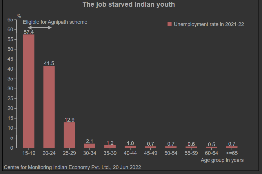 傳統上提供“鐵飯碗”的軍隊亦是年輕人脱產備考的熱門目標,正是同一批人在6月14日以後發動了針對Agnipath的抗議運動——改革讓他們的夢想一夜間變得遙不可及,儘管或許與此同時,也是他們向印度空軍遞交了第一批Agnipath計劃的申請表。