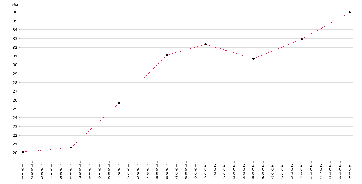 結果,特區政府長期對房價不作為,民眾生活負擔加重,社會矛盾激化。從2005年以來,普通民眾的日常開支裏,住房花費的佔比持續上升。