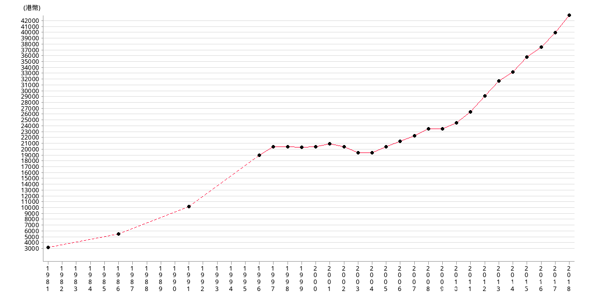 不過,《聲明》限制了賣地面積,卻沒有限制價格。結果那十幾年裏,香港房價翻了20倍,“馬照跑,舞照跳,樓照賣”,港英政府和地產商都賺翻了。每隔五六年一次漲跌循環,大量小企業被淘汰出局,強者恆強,大地產商囤的地皮越來越多。高峯時期,港英政府四成的財政來自賣地。企業也將房子當做抵押,向銀行借貸。迴歸前夕,整個香港社會陷入炒房熱,經濟與房地產深度綁定,一榮俱榮,一損俱損。