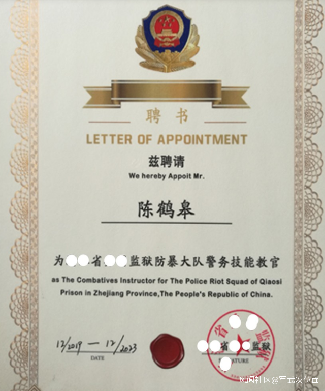 2004年,陳鶴皋又被浙江省某監獄防暴大隊聘請為警務技能教官,為監獄裏的獄警們教授徒手製暴術,想必當天犯人們看到陳鶴皋來到監獄後,一定吃得更香了。