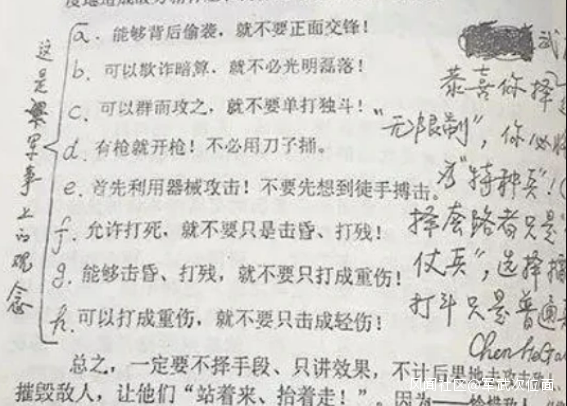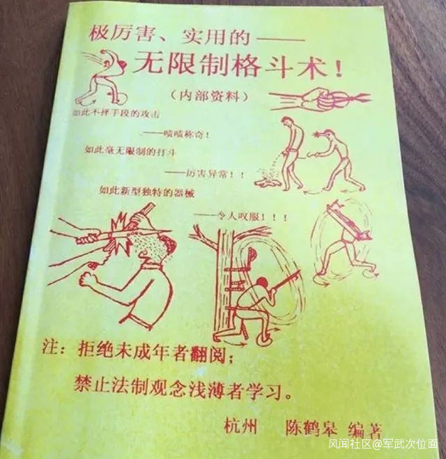可以説,陳鶴皋的無限制格鬥術是完全不講武德的,比如先跟對方説要點到為止,然後趁機用狼牙棒攻擊對方襠部!又或是先跪地求饒讓對方騎在自己身上羞辱自己,然後一個轉身後猛蹬對方襠部!馬保國要是翻開這本《無限制格鬥術》可能當場就給書撕嘍!