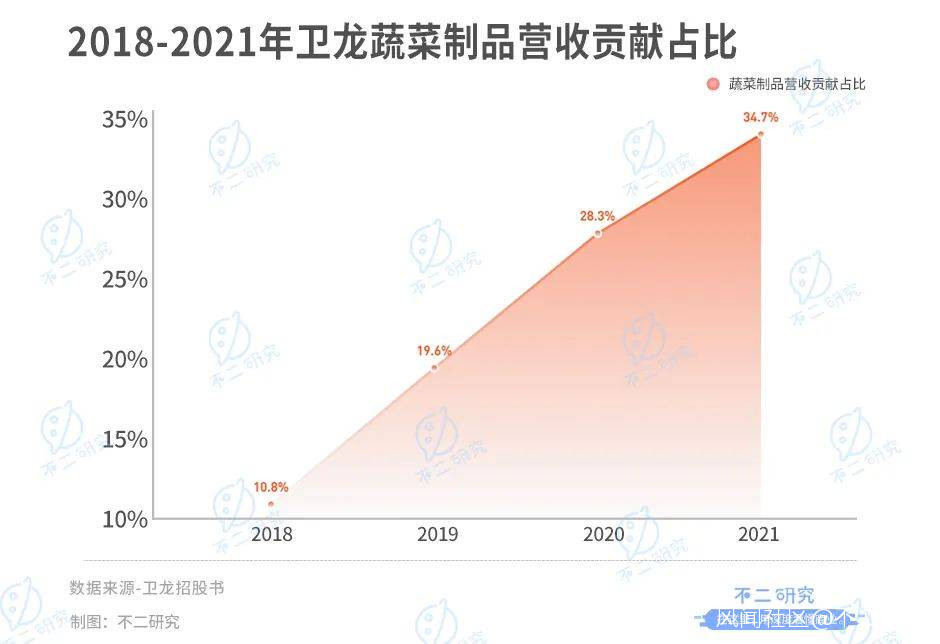 從營收貢獻來看,蔬菜製品佔比正快速增加:2018-2021年,佔比分別為10.8%、19.6%、28.3%和34.7%。