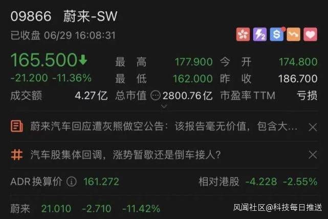 屋漏偏逢連夜雨,前幾天蔚來測試車從高樓墜落引起關注,昨晚又遭機構做空。