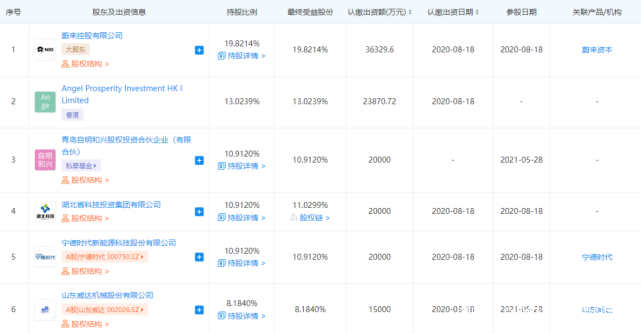 儘管蔚來是其第一大股東,但持股僅為19.82%,10%以上的股東還有4個。