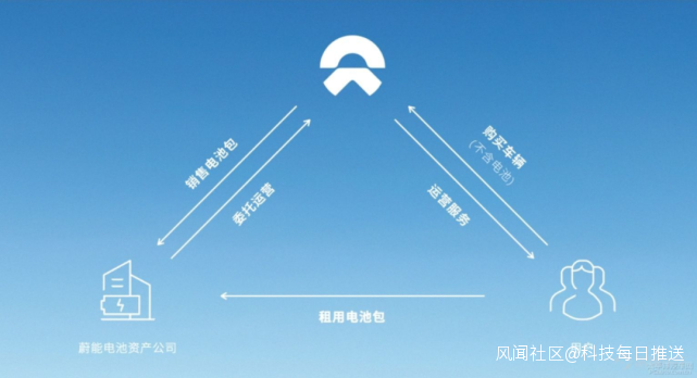 用户、蔚來、蔚能三者的關係可以簡單描述為:用户向蔚來買不包含電池的車、用户從蔚能租用電池、蔚能向蔚來買電池。