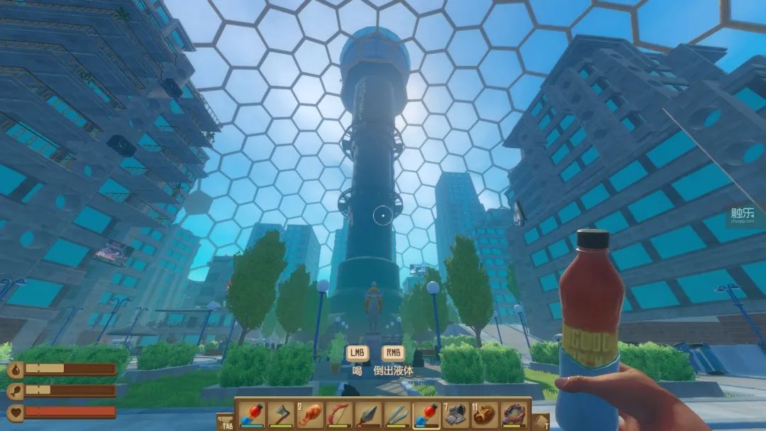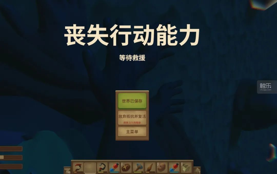 第一章的劇情足夠豐富嗎?答案是肯定的。但過於豐富的內容量被塞進了一整個小島中,讓玩家難免有些無所適從。在這之前,玩家並不習慣長時間離開自己的木筏,這意味着資源的短缺,在劇情島上無法獲取生存所需的淡水與食物,這對長時間的探索來説是致命的。另一方面,玩家又必須留下足夠的包裹空位,用來保存島上搜刮的各類物資和藍圖。儘管在多人遊戲中,只要你的隊友能找到你在何處倒下,就能將你揹回木筏,但糟糕的地方在於,如果一個島過大,描述自己倒下的位置就成了一場溝通災難。玩家死亡之後,視角被強制固定在地面上,往往自己也沒法弄清身處何方,只能描述:“我被熊追了!”“我好像在一片草地上……”