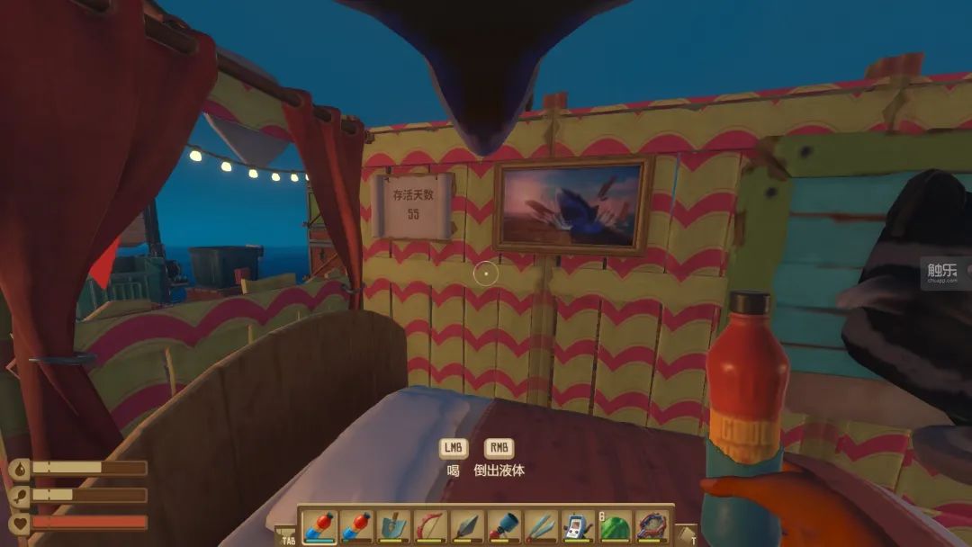 開發者也深諳此道。原型版本發佈一個月後,《Raft》又在獨立遊戲平台itch.io上線了預發佈版本。除了常規的木板與塑料垃圾之外,這個版本還額外加入了木桶,打撈木桶可以獲得隨機的數個道具,木桶成了讓玩家們眼前一亮的小驚喜——這就像“塞爾達”系列裏的罐子一樣,沒人能拒絕未知的魅力。