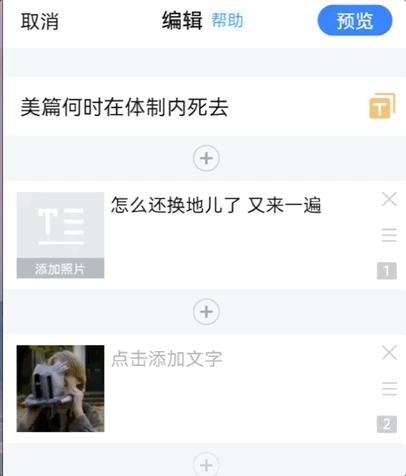 工作中總會有很多臨時的任務出現,見怪不怪了。但被切斷睡回籠覺只是接受折磨的開始,對美篇的改動更是令人痛不欲生。