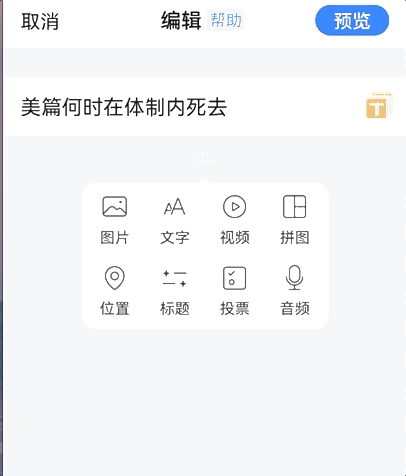 我先是創建了一個新的圖文界面,看上去感覺還不錯,點“➕”號就能添加一塊新內容。可當我輸內容的時候,我不舒坦了,輸入正文的時候,我需要跳到另一個空白界面。