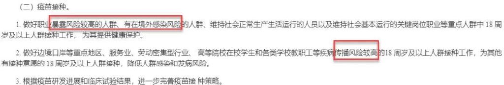 裏面強調的是高暴露風險人羣,誰的感染風險高誰需要優先接種,背後的邏輯是防感染。