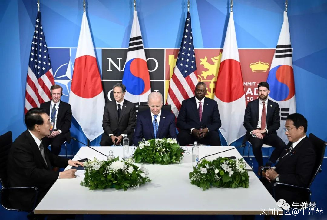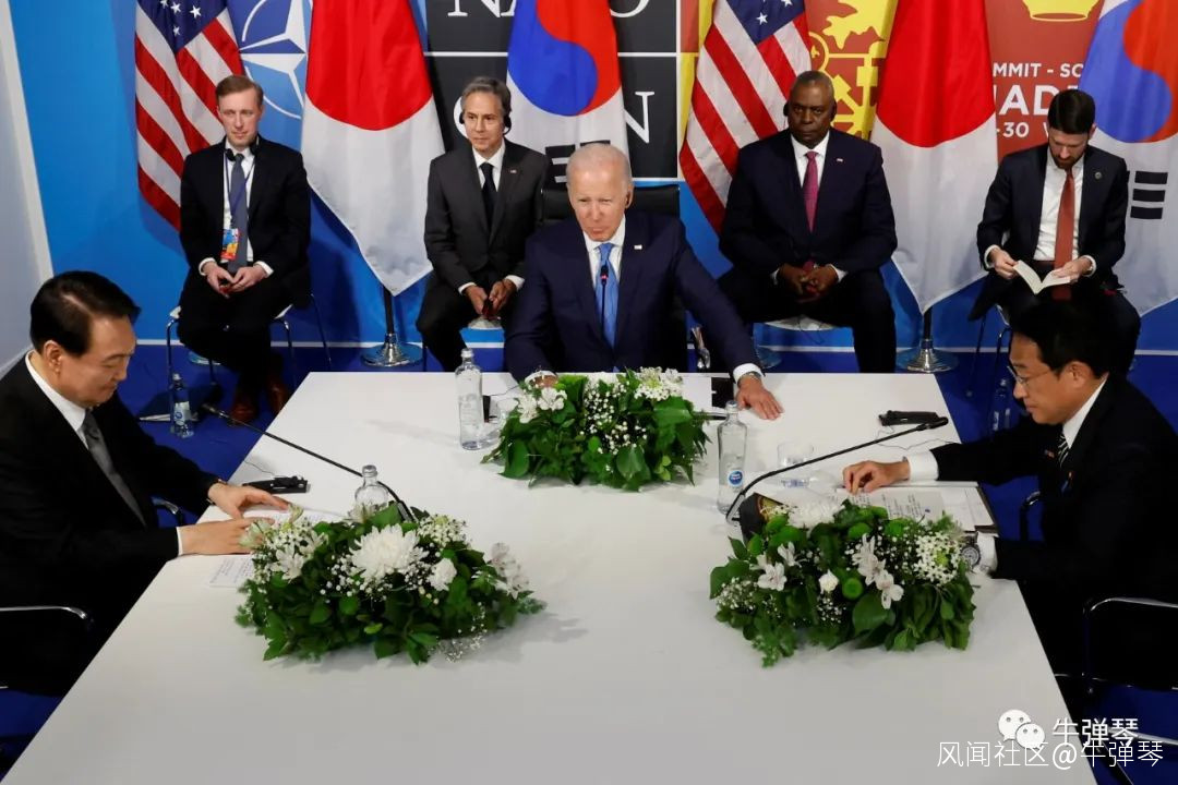北約馬德里峯會,日本首相岸田文雄和韓國總統尹錫悦也破天荒去了。而且,拜登還拉着召開了美日韓三方會晤。