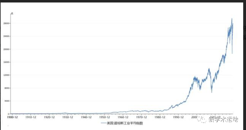 第四張圖,是美國的道瓊斯指數長期走勢圖,現在已經處於歷史最高位。可以看到,90年後它的快速增長,與美國的貿易赤字、國債是相關的。