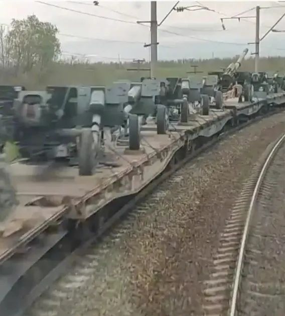 這兩天,有住在鐵路沿線的俄羅斯老百姓發現:當地的軍列,正日夜不停,往前線運送各種不同口徑的重火炮,什麼“風信子B”152毫米牽引加農炮啦,什麼“D-30”122毫米榴彈炮啦,還有綽號“芍藥花”的203毫米重型自行火炮,最後這玩意兒挺恐怖,一炸就是一個超級大坑。