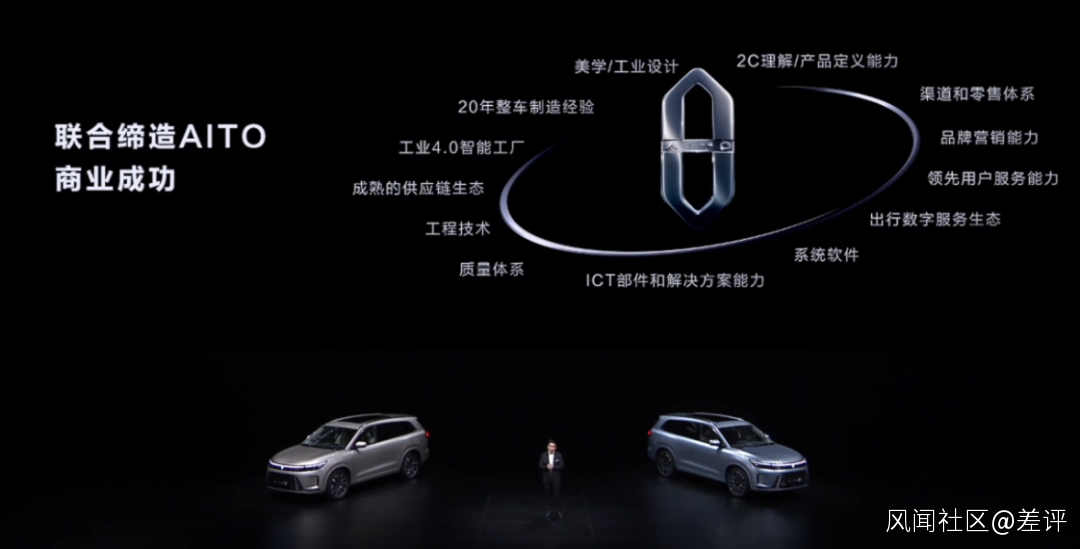 話説這場發佈會看下來,華為雖然表面上不造車,**但 AITO 幾乎算是華為的 “ 親兒子 ”。**除了車殼子不是華為造,電驅電控和電池這三電都是華為在搞。