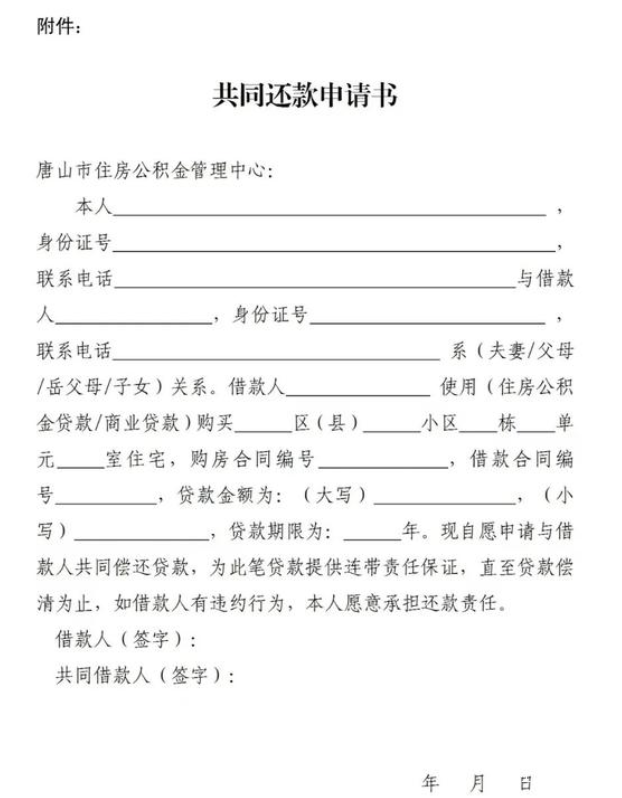 除此之外,《通知》指出,父母或子女在唐山市內用公積金貸款購房的,在自身還貸能力不足的情況下,作為共同還款人允許參與還貸能力計算提高貸款額度。