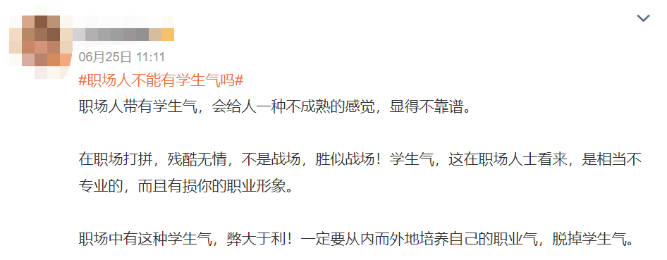 環境和閲歷會很大程度地影響這個理解的過程,所以也不是職場人能不能有學生氣,而是上班久了,自然而然就不怎麼會有學生氣了。