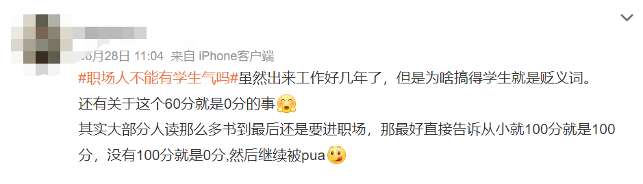 而反方則會覺得有的職場老油條也挺讓人討厭的,什麼學不學生氣,還不就是領導的PUA話術?