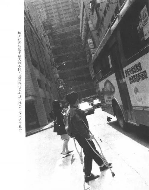 在鄭智化的自傳中有一張照片,他拄着雙枴,正走向面前的公交車。