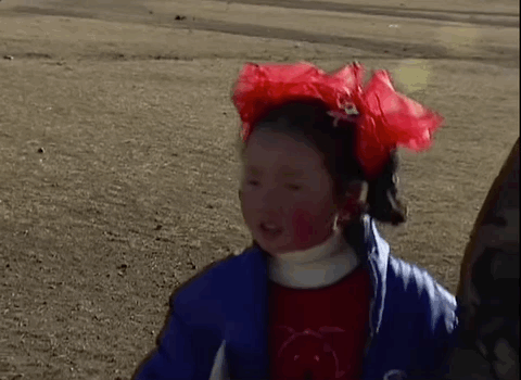 女孩盯着這位不速之客,眉頭皺得更深了,朝他喊着蒙語: