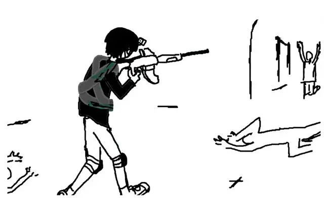 在另一段名為《玩具士兵》的視頻中,一個類似嫌犯的簡筆畫人物臉朝下躺在自己的血泊中,周圍是拔槍的警察。