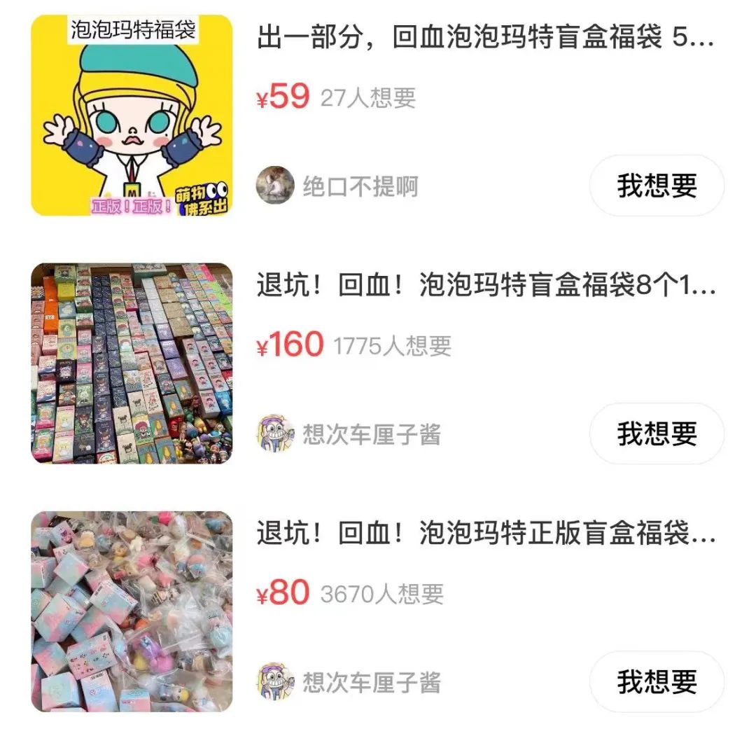 同款拋售只增不減,降價內卷日益激烈,賣家們不得不整點新活兒以表誠意,於是又有了按斤論價、福袋打包、半買半送的玩法。尤其是二手盲盒,很多貶值到路人看了都流淚的程度。