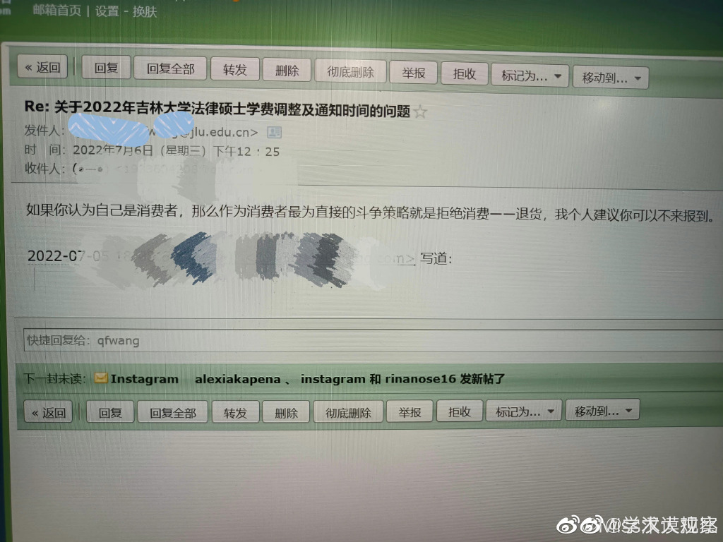 吉大上調法律碩士學費,疑似學生寫信認為價格不合理,後收到回覆説可以不來報到?_風聞