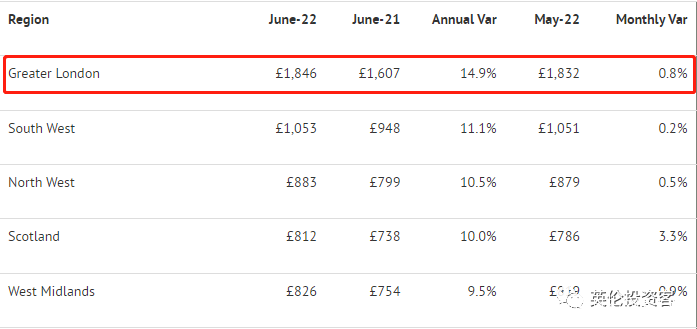 1. 截至2022年6月,倫敦平均月租金已達1846英鎊,約人民幣1.5萬,再創歷史新高。