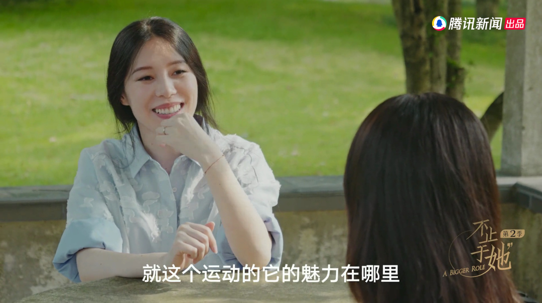 《不止於她》第二季的拍攝時間並不是一個點,而是很多時間節點連成的線。這就將受訪者放在了一個“動態連續”的系統中進行呈現,觀眾能夠在不同節點的組合中看到變化。屹芝第一次見楊倩是在房車中,那時對方在訓練比較忙碌。第二次就在西湖邊的公園和書店,楊倩侃侃而談不緊不慢。分別時是母親節,屹芝給楊倩媽媽帶了禮物,楊倩則期待下次見面屹芝腹中的寶寶已出生。