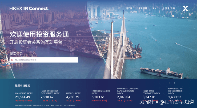 據香港電台網站,香港交易所推出投資者關係網絡平台投資服務通(IR Connect),協助香港上市發行人與市場各方建立聯繫及增進溝通。港交所行政總裁歐冠升出席開通儀式時表示,全球疫情及地緣政局不穩,導致市場波動,消費者行為亦有轉變,企業與相關持份者的溝通變得十分重要。要得到投資者的信任,投資者關係不可或缺,但亦同時帶來挑戰,特別是企業有壓力要迅速回應投資者關注等,亦要確保發展策略獲得支持。