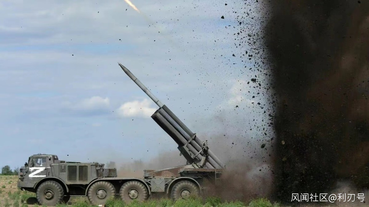 ▲俄軍使用“龍捲風”300毫米口徑火箭炮猛烈打擊烏軍陣地