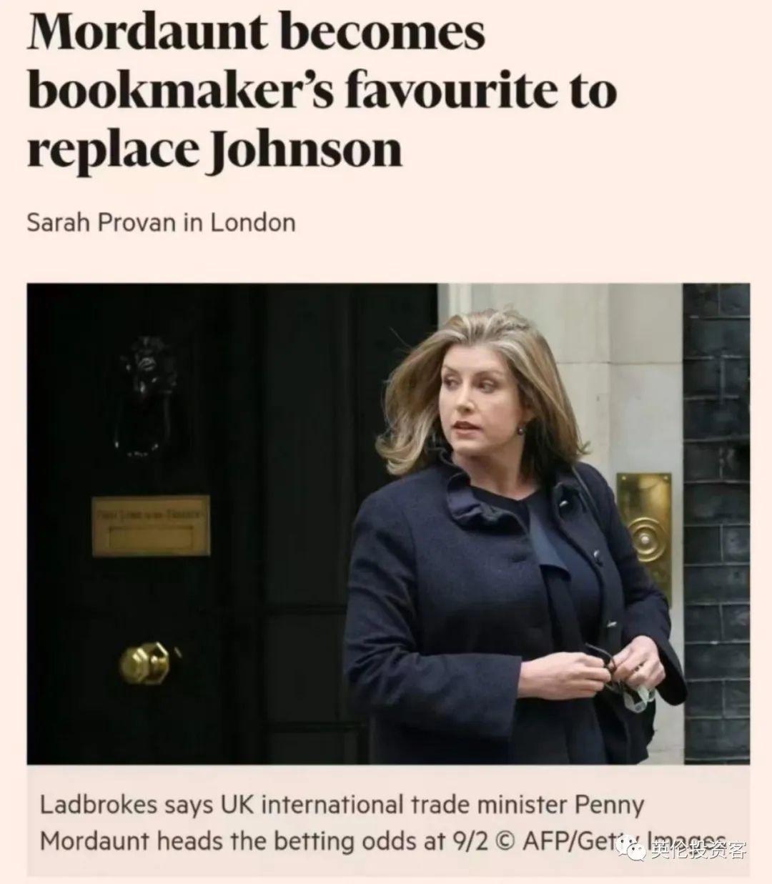 至於下一任英國首相,如上所述,目前賠率最看好前財政大臣裏希·蘇納克、前國防大臣彭尼·莫當特和副首相多米尼克·拉布,但各位候選人的差距不算太大,賠率也非常接近。