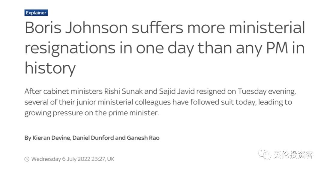 截至鮑里斯宣佈辭職之前,一共有59名政府高官在短時間內提交辭呈,創下了英國政壇的歷史記錄。
