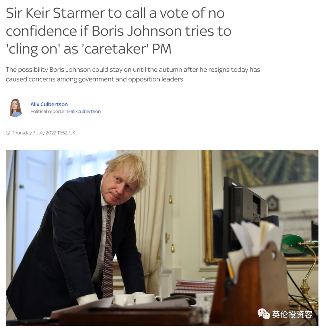 於是,鮑里斯希望在首相位置上多留幾個月的想法也宣告失敗,最終在辭職講話確認將盡快下台。