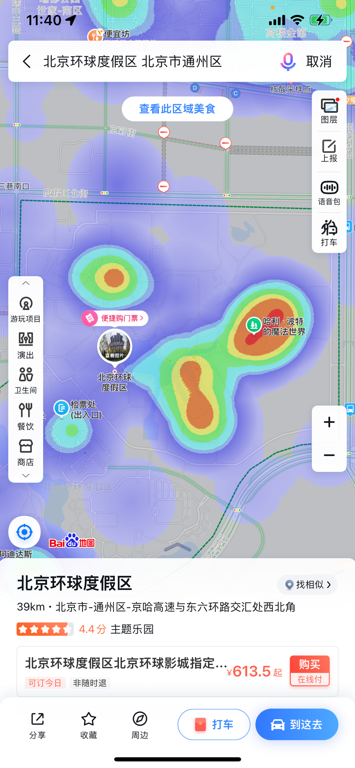 (百度地圖熱力圖顯示近日京滬兩地主題樂園人流量較高)
