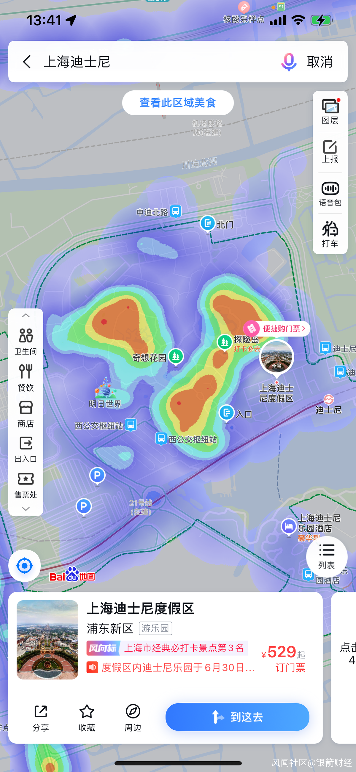 (百度地圖熱力圖顯示近日京滬兩地主題樂園人流量較高)