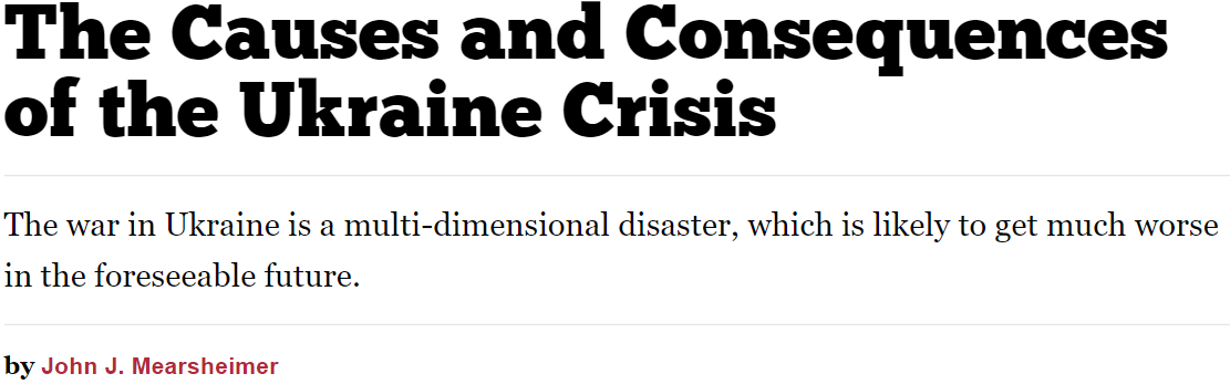 我一生中已兩次目睹這一現象:第一次是越南戰爭,第二次是伊拉克戰爭。美國人想知道,何以他們的國家在這兩次戰爭中的失算都相當嚴重。鑑於美國及其北約盟友在導致烏克蘭戰爭的一些事件上扮演了關鍵角色,且目前在那場正在進行的戰爭中扮演着核心角色,評估西方對這場災難的責任是適當的。
